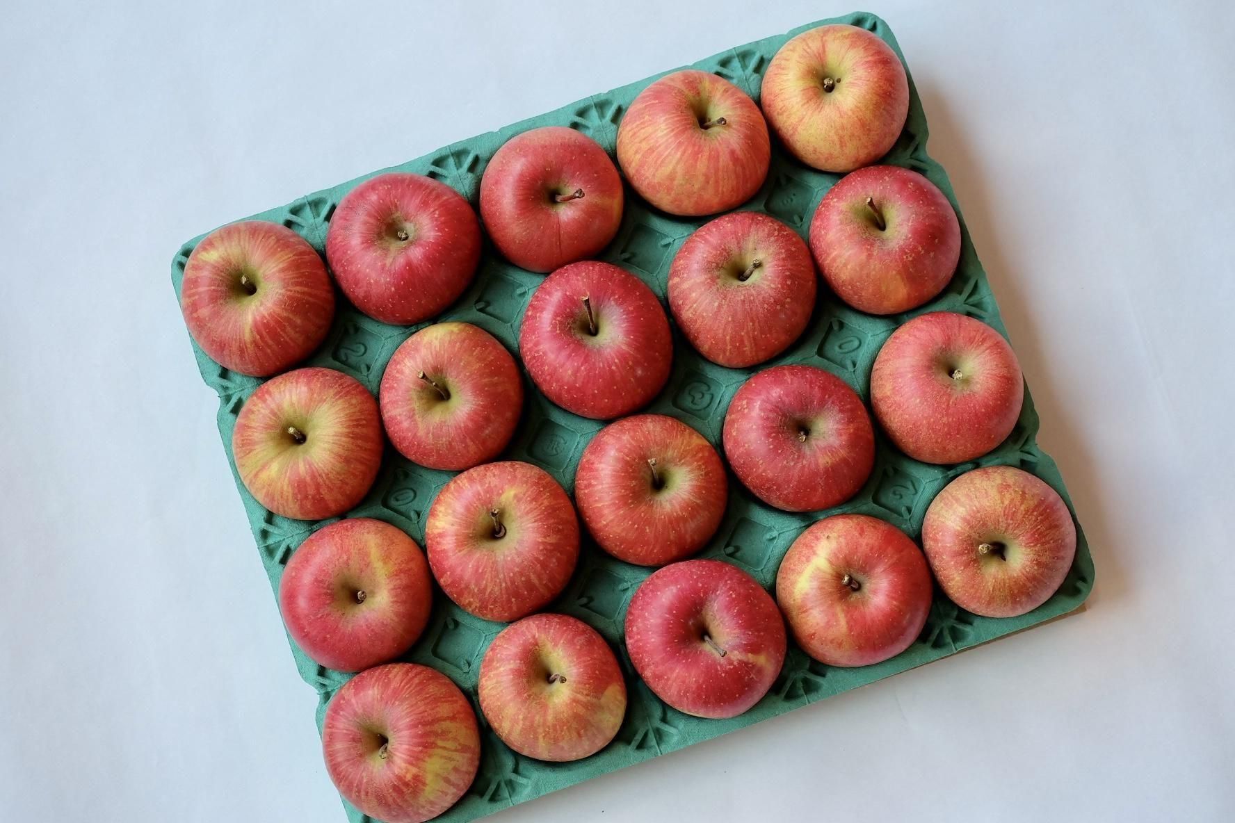 山形県上山産りんご ふじ 5キロ 【無袋栽培りんご 5kg】 発送方法:常温発送 保存方法:常温保存 通常のりんご栽培は、色を赤くするために葉っぱを取ってしまうことが多いですが、私たちは、最小限の葉摘みにとどめ極力葉を残す、葉とらず栽培です。葉を残すことで、光合成を促進し、味の濃さと香りの良いりんご栽培を目指しています。 豊かな自然環境と、有機質にこだわった肥料と土づくりで育った果物たちをどうぞお楽しみください。 約5キロ(20個入り)